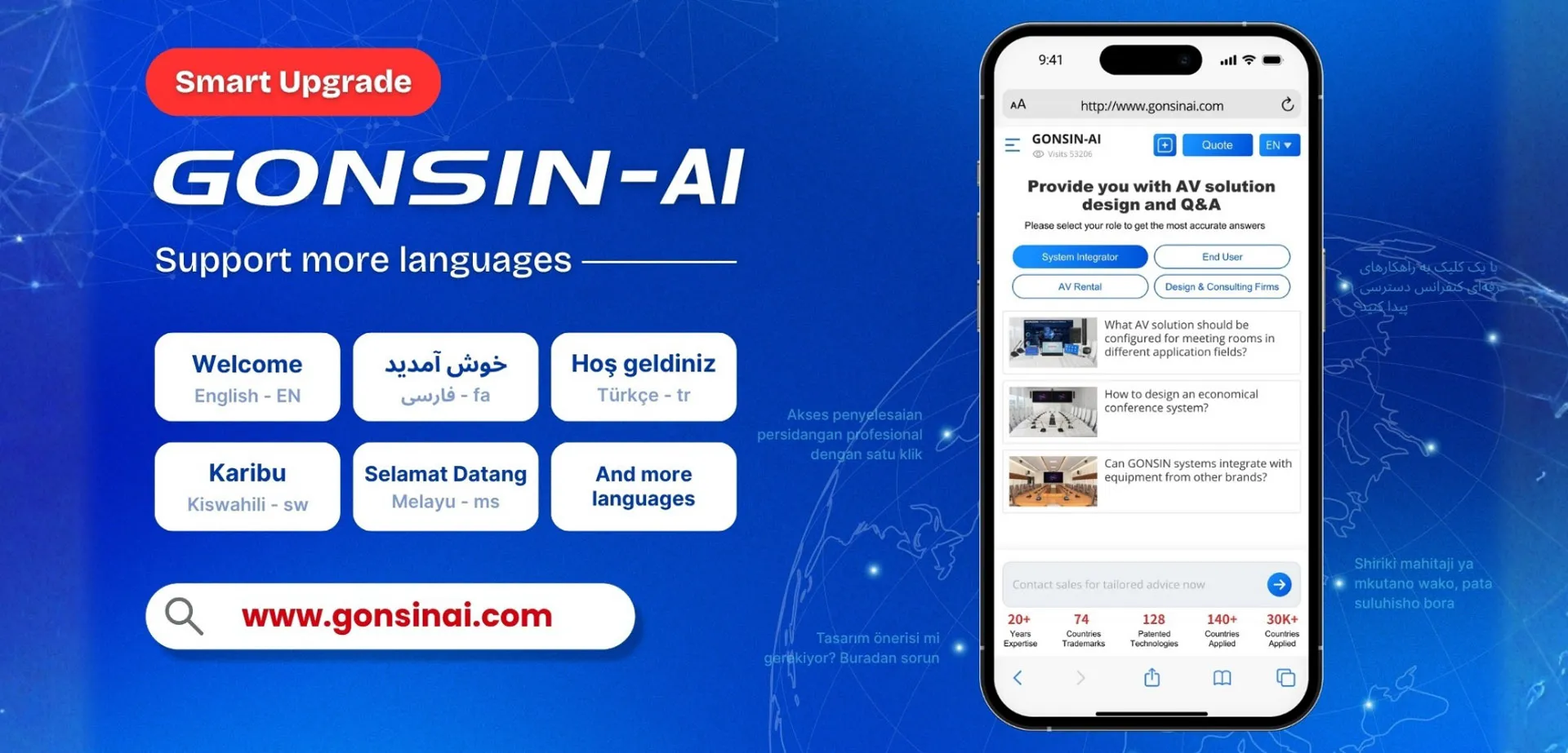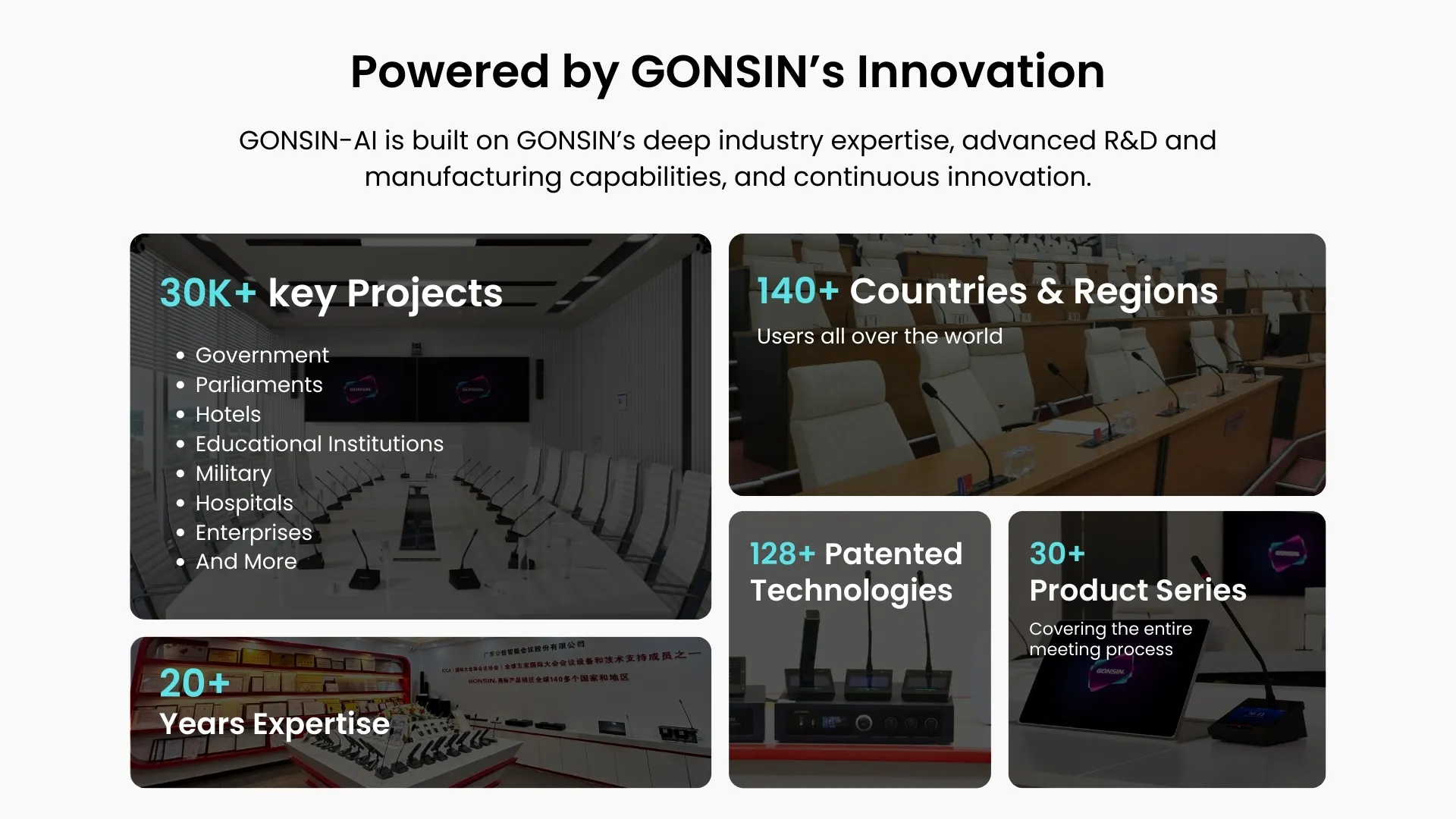 GONSIN-AI, the first AI agent in conferencing, provides ProAV design, real-time Q&A, and interactive technical consulting to solve challenges instantly and build truly engaging customer experiences.